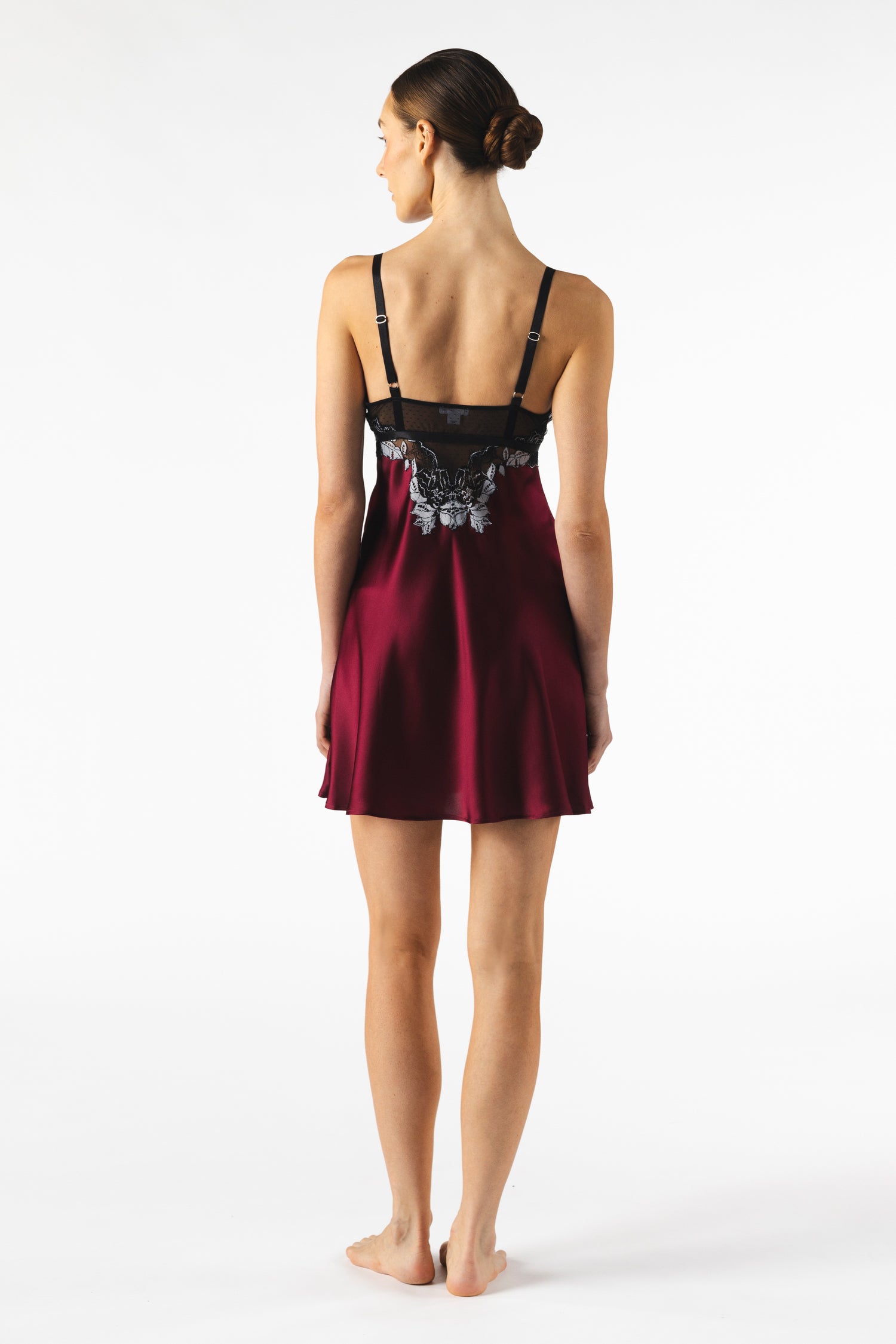Saca a relucir tu feminidad interior con la lujosa camisola Roxy Bust Support. La elegante seda burdeos con toques bicolor negro y plateado crea una camisola de seda roja que es a la vez lujosa y casi peligrosa. Es hora de conquistar corazones con la apasionante Roxy. Llévala sola o con la bata corta de seda Roxy y olvídate de lo común.